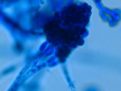 Gliocladium sp. - a few phialides without conida shows there somewhat "flask-like" or "inflated" shape. (X400 LPCB: DMD-108)